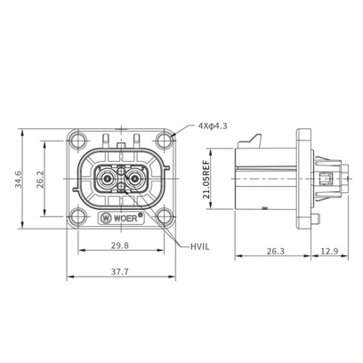 不带高压互锁连接器插座/接4mm²非屏蔽线